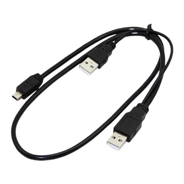 کابل هارد Y شکل USB2.0 مدل ۰۰۵ از یک سمت دارای درگاه Mini USB یا همان ذوزنقه و از سمت دیگر دو درگاه USB جهت انتقال دیتا و انتقال برق وجود دارد. برای استفاده از این کابل باید هر دو درگاه USB متصل شده باشد.