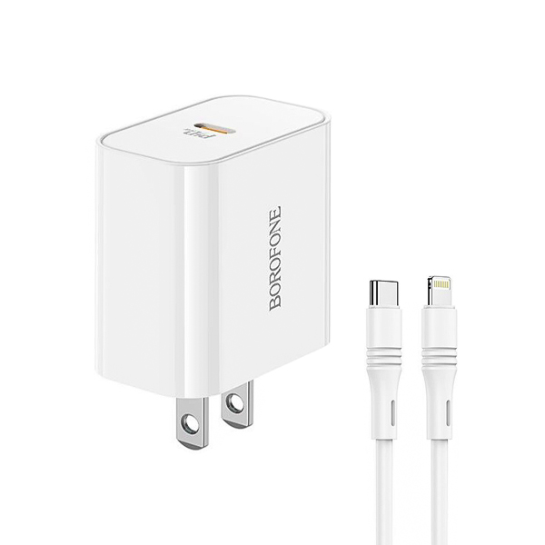 شارژر دیواری PD 20W بروفون مدل BA57 همراه با کابل لایتنینگ