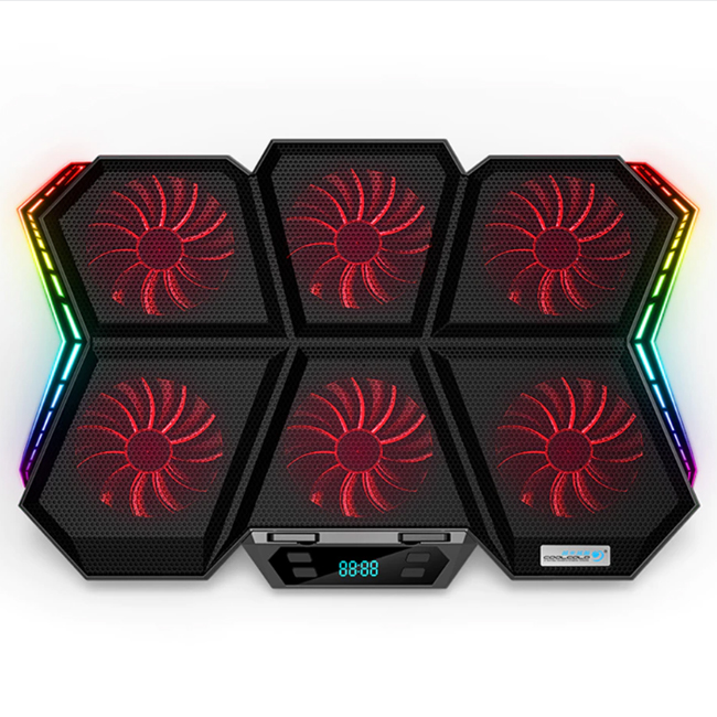 پایه خنک کننده لپ تاپ کول کلد مدل K40 ابعاد 37*280*426 میلیمتر و 840 گرم وزن دارد و به 6 فن قدرتمند با سایز 60*60 و سرعت چرخش 2600 دور بر دقیقه مجهز شده است.