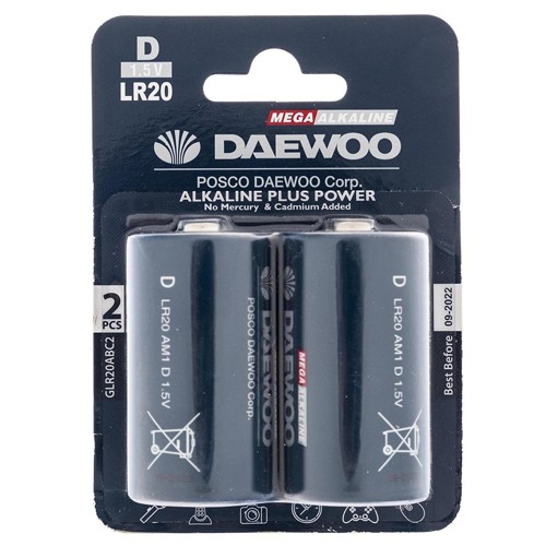 باتری بزرگ دوو مدل Alkaline plus Power با ولتاژ 1.5 ولت در بسته بندی 2 عددی عرضه می شود.
