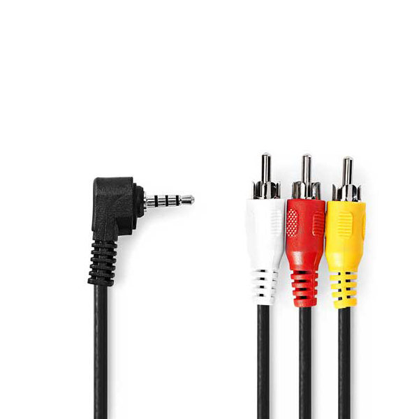 این کابل دارای یک جک 3.5 میلیمتری صدا می باشد که به ورودی دوربین وصل می شود و سه فیش رنگی RCA که به ورودی های AV یا همان دستگاه هایی نظیر تلویزیون و ال سی دی و غیره وصل میشود.