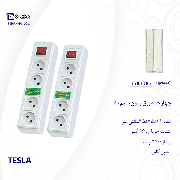 چهار خانه برق بدون کابل دنا مدل تسلا بسته دو عددی