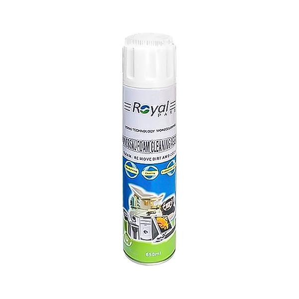 اسپری کف فرچه دار مدل 005 حجم 650 میلی لیتر یک تمیز کننده عالی برای سطوح مختلفی مانند روکش های چرمی، پلاستیک، فلز، سرامیک، پرینتر، موبایل و… است. یک فرچه مخصوص بر روی درب این اسپری تعبیه شده که باعث بهبود عملکرد توسط آن می شود. حجم اسپری کف رویال ، 650 میلی متر با قدرت پاک کنندگی بالا می باشد.
