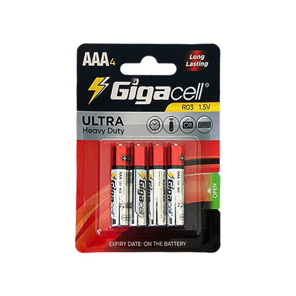 باتری نیم قلمی گیگاسل مدل R03 با ولتاژ 1.5 ولت در بسته بندی 4 عددی عرضه می شود. از این باتری نیم قلمی گیگاسل برای کیبوردها، موس های بیسیم، برخی از دوربین ها و… نیز استفاده میشود.