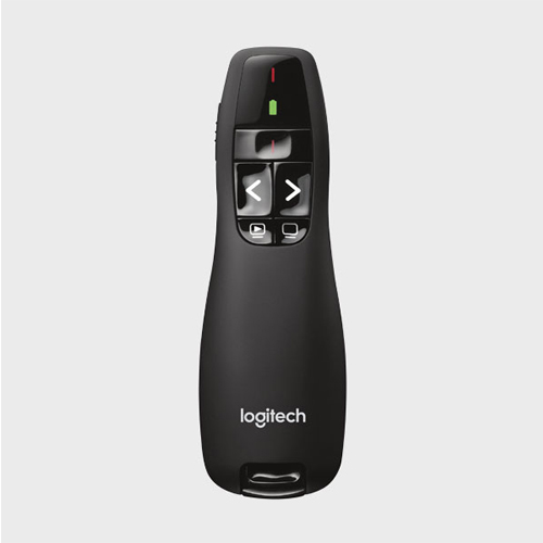 Logitech R400 Cordless Presenterپرزنتر لاجیتک مدل R400 محصولی پرکاربرد برای اساتید و سخنوران است. این پرزنتر امکاناتی را در اختیار شما قرار می دهد که بتوانید به راحتی و بدون نیاز به ابزار اضافی، یک سخنرانی خوب و مؤثر داشته باشید. مدیریت ساده اسلایدها، اشاره گر لیزری قرمز رنگ، وجود نشانگر باتری، اتصال بی سیم و برد ۱۵ متری از دیگر ویژگی های این محصول می باشد. برای اتصال کافی است گیرنده را به USB متصل کنید و با اتصال این پرزنتر به دستگاه دیگر نیاز نیست برای تغییر اسلایدها، پشت لپ تاپ بایستید.