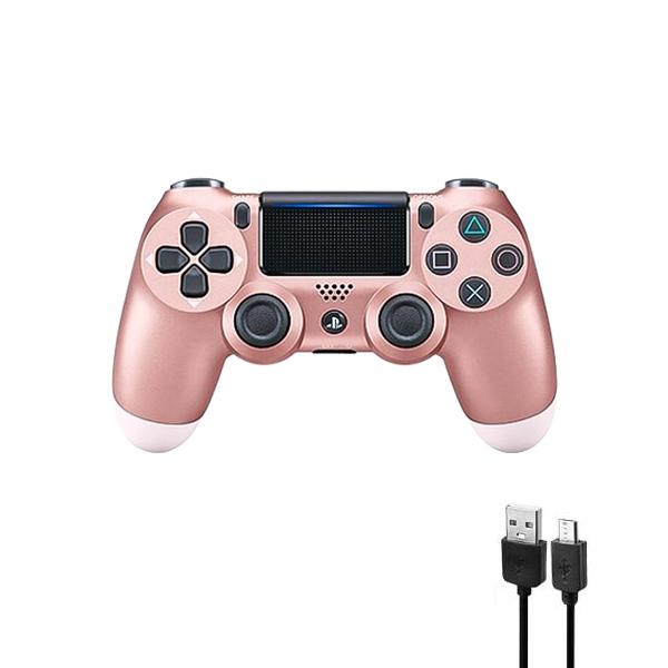 PS4 مدل آبی و رزگلد با طراحی جذاب و دو رنگ خاص، از طریق اتصال بیسیم (بلوتوث) و کابل MicroUSB به دستگاههای بازی متصل میشود. این دسته دارای 17 کلید کنترلی است و با قابلیت شوک، تجربهای هیجانانگیزتر از بازی را به کاربران ارائه میدهد. همراه با این دسته، یک کابل MicroUSB نیز برای شارژ و اتصال وجود دارد.