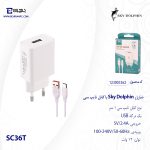 شارژر دیواری Sky Dolphin 12W مدل SC36T + کابل تایپ سی
