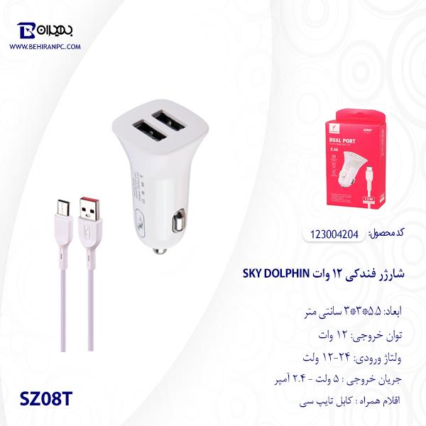شارژر فندکی دو پورت Sky Dolphin مدل SZ08T به همراه کابل Type-C
