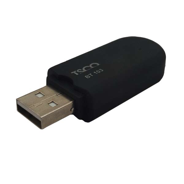 تسکو مدل BT103 برای انتقال صدا از فرستنده هایی مثل تلویزیون به اسپیکر، بلوتوث و… استفاده می شود. یک کابل AUX و یک کابل 1 به 2 صدا به همراه این محصول ارائه شده است. کافی است یک سمت کابل AUX را به دانگل و سمت دیگرش را به فرستنده متصل کرده و دانگل بلوتوث را به پورت USB آن وصل نمایید.
