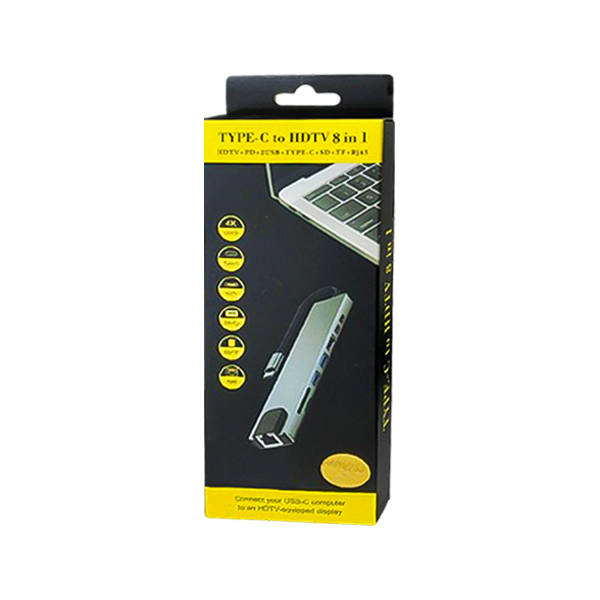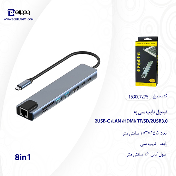 تبدیل 8in1 تایپ سی به 2USB-C /LAN /HDMI/ TF/SD/2USB3.0