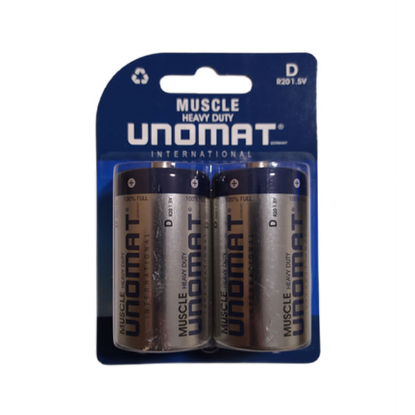 باتری بزرگ یونومات با ولتاژ 1.5 ولت در بسته بندی 2 عددی عرضه می شود.