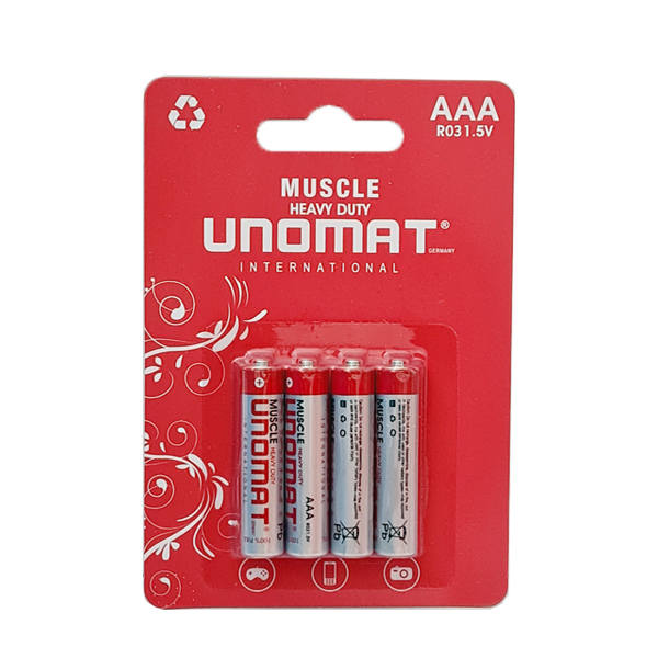 باتری نیم قلمی کارتی یونومات R03 بسته 4 عددی
