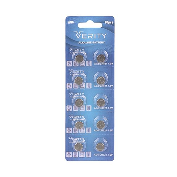 سکهای آلکالاین AG6 وریتی با ولتاژ 1.5 ولت، یکی از انواع باکیفیت باتریهای سکهای است که به دلیل تکنولوژی ساخت آلکالاین خود، دارای عملکرد قوی و طول عمر مناسبی میباشد. این به صورت بسته 10 عددی عرضه میشوند و معمولاً در جعبههای 20 کارت قرار دارند، که هر کارت شامل یک بسته 10 عددی است.