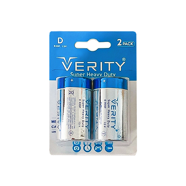 باتری بزرگ وریتی مدل R20P با ولتاژ 1.5 ولت در بسته بندی 2 عددی عرضه می شود.