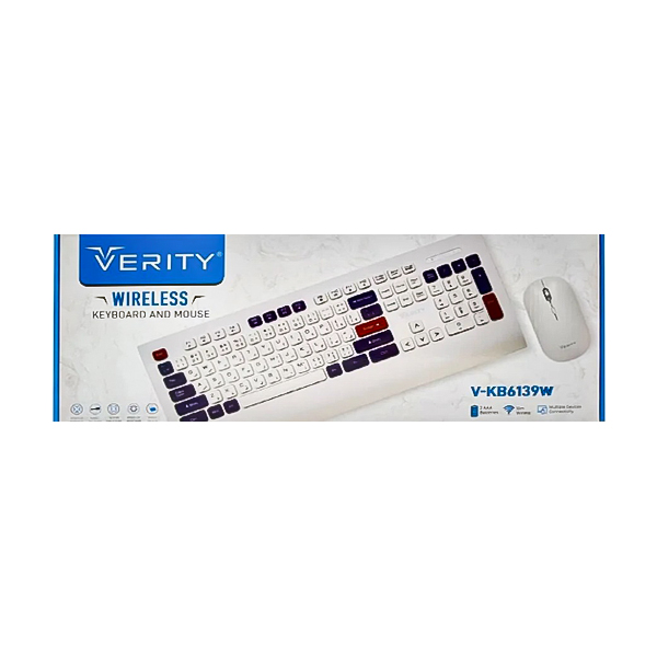 کیبورد و ماوس بیسیم وریتی مدل V-KB6139W یک گزینه مناسب برای کاربران حرفهای و روزمره است. این محصول از طریق دانگل USB و اتصال بیسیم کار میکند. برد 10 متری این مجموعه، آزادی عمل بیشتری را برای کاربر فراهم میکند.